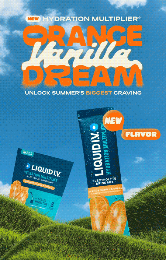 Hero product launch banners for Liquid I.V.'s website to feature Orange Vanilla Dream. Created 6 and 15 second versions for both desktop & mobile display. Custom GIF export settings using Photoshop to ensure compatibility and smooth integration.